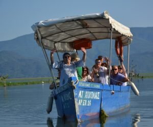 Το απόγευμα οι συμμετέχοντες πήραν μέρος σε οργανωμένη δράση οινοβαρκάδας μέσα στη λίμνη Κερκίνη.