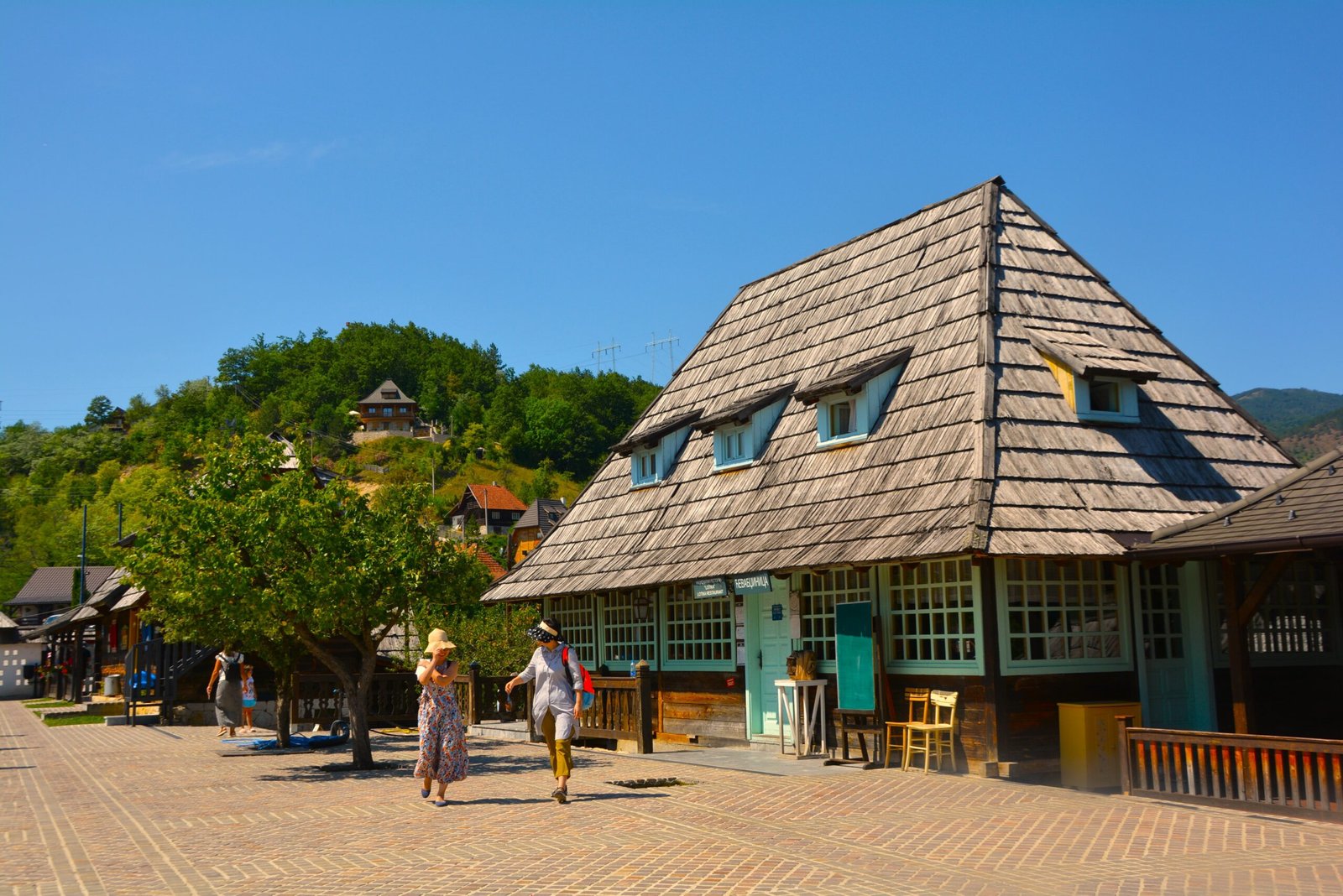 Περπατώντας στα πλακόστρωτα δρομάκια του Drvengrad, νιώθεις ότι έχεις βγει από τη ροή του χρόνου. Ο αέρας είναι καθαρός, η θέα στα καταπράσινα βουνά μαγευτική και η ατμόσφαιρα γαλήνια. Τα ξύλινα σπίτια με τις σκαλιστές λεπτομέρειες, τα ζεστά χρώματα και τα περίεργα αντικείμενα που κοσμούν κάθε γωνιά, δημιουργούν ένα σουρεαλιστικό, κινηματογραφικό σκηνικό που σε προσκαλεί να το εξερευνήσεις.