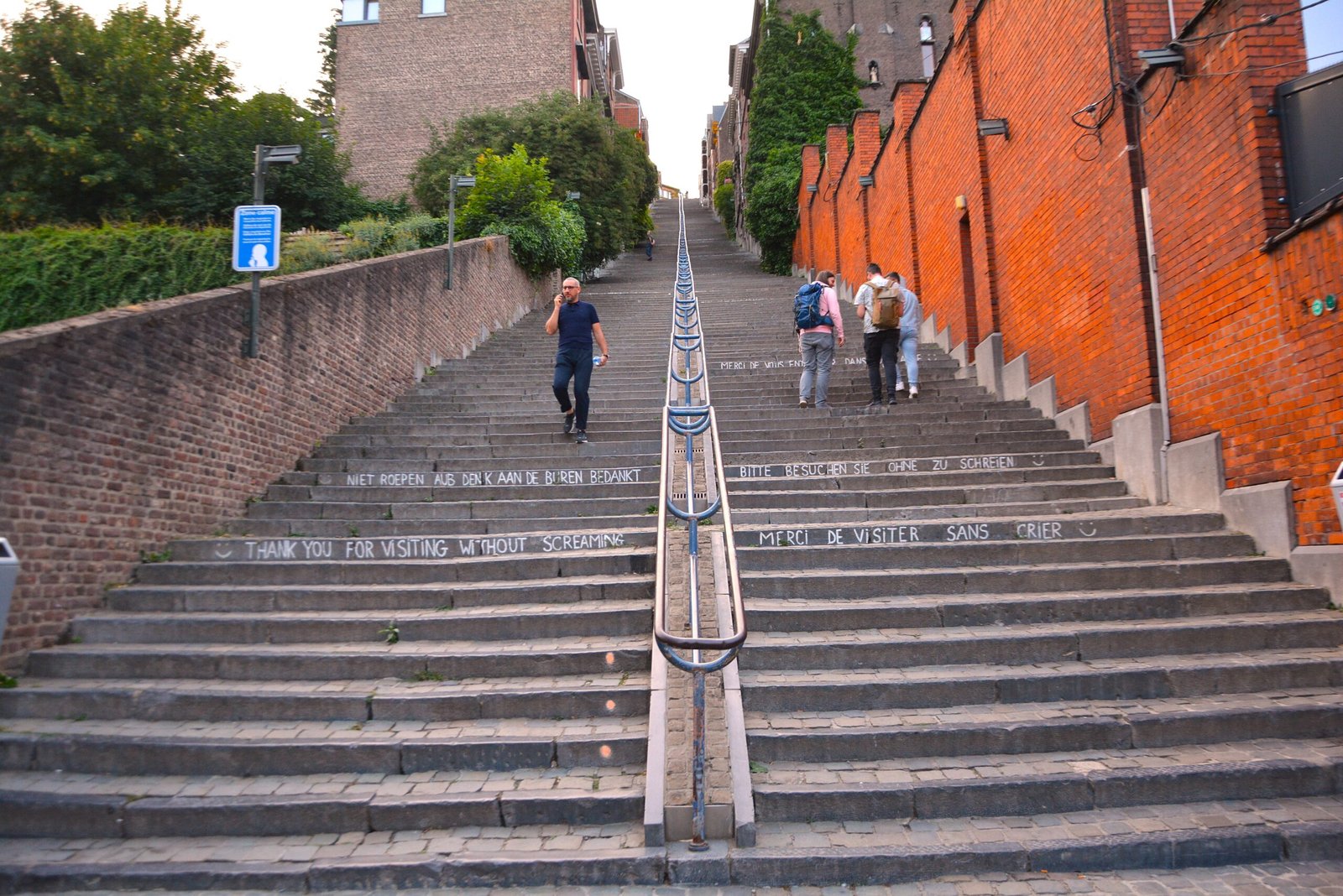Η κορυφή: Φτάνοντας στο τέρμα, η ανταμοιβή είναι η πανοραμική θέα της Λιέγης, του ποταμού Μεύση (Meuse) και των καμπαναριών που ξεπροβάλλουν μέσα από την πόλη.Travel Tips για τους επίμονους.