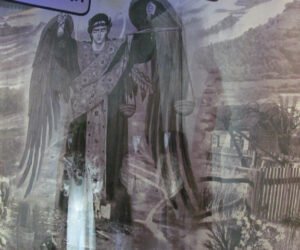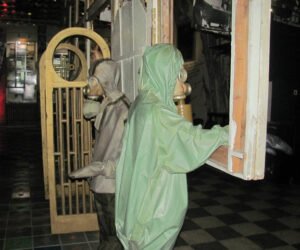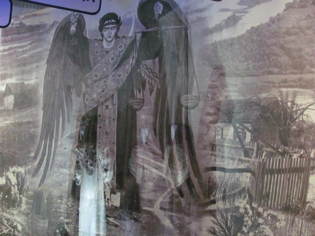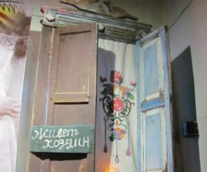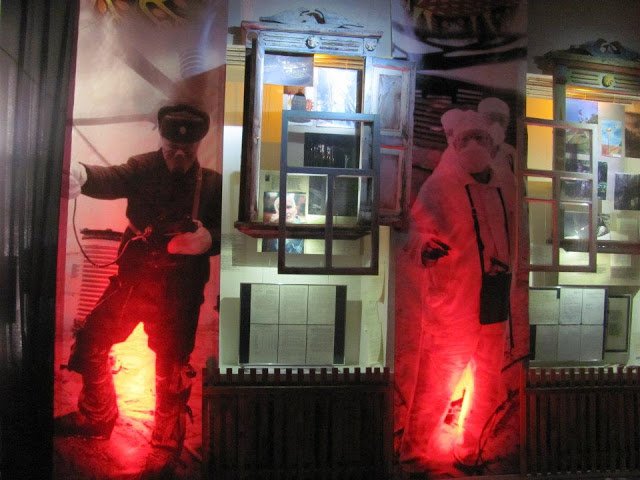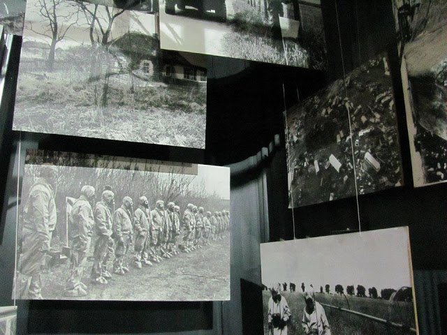Κωμικοτραγική επίσης μία φώτο από ένα παντζούρι με την επιγραφή: «Ο ιδιοκτήτης είναι μέσα», για την αποτροπή κάποιων άμυαλων-επιτηδείων που εισέρχονται στα ερημωμένα χωριά για να λεηλατήσουν ότι βρουν. Φύγαμε αρκετά προβληματισμένοι από αυτό το μουσείο, σκεπτόμενοι συγχρόνως τα λόγια του γνωστού Ιρλανδού συγγραφέα Bernard Shaw: “Αν η ιστορία επαναλαμβάνεται και το απροσδόκητο πάντα συμβαίνει, πόσο ανεπίδεκτος μαθήσεως από την εμπειρία είναι ο άνθρωπος…;