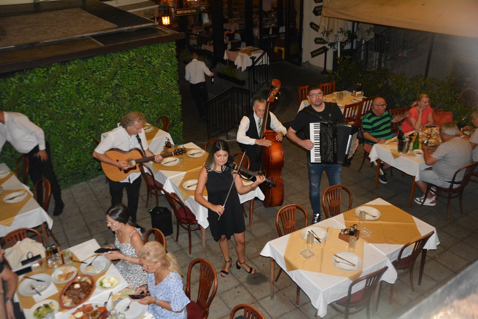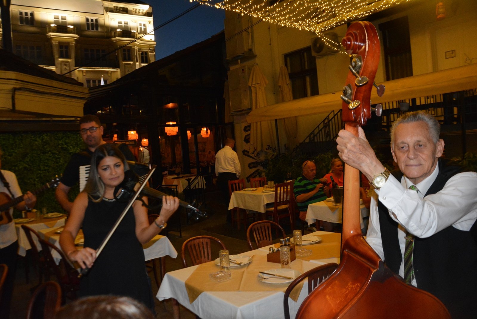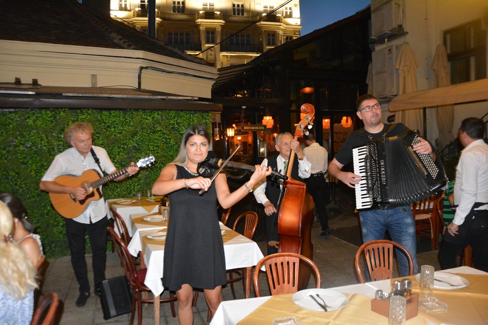 Καθώς πέφτει το βράδυ, ο δρόμος μεταμορφώνεται σε ένα ανοιχτό πάρτι. Οι παραδοσιακές μπάντες, γνωστές ως “orkestri”, γεμίζουν τα στενά με τους ήχους του ακορντεόν, του βιολιού και του κλαρινέτου. Παίζουν παραδοσιακή μουσική, γνωστή ως “Starogradska muzika” (μουσική της παλιάς πόλης), που συνδυάζει στοιχεία από τα Βαλκάνια, την Ανατολή και την Κεντρική Ευρώπη. Οι μουσικοί, περνώντας από τραπέζι σε τραπέζι, ενθαρρύνουν τους επισκέπτες να τραγουδήσουν και να χορέψουν, δημιουργώντας μια ατμόσφαιρα γεμάτη ζωντάνια και κέφι. Είναι αυτή η μοναδική αίσθηση του ανεπίσημου, της ζεστασιάς και της χαράς που κάνει τη Skadarlija τόσο ξεχωριστή.
