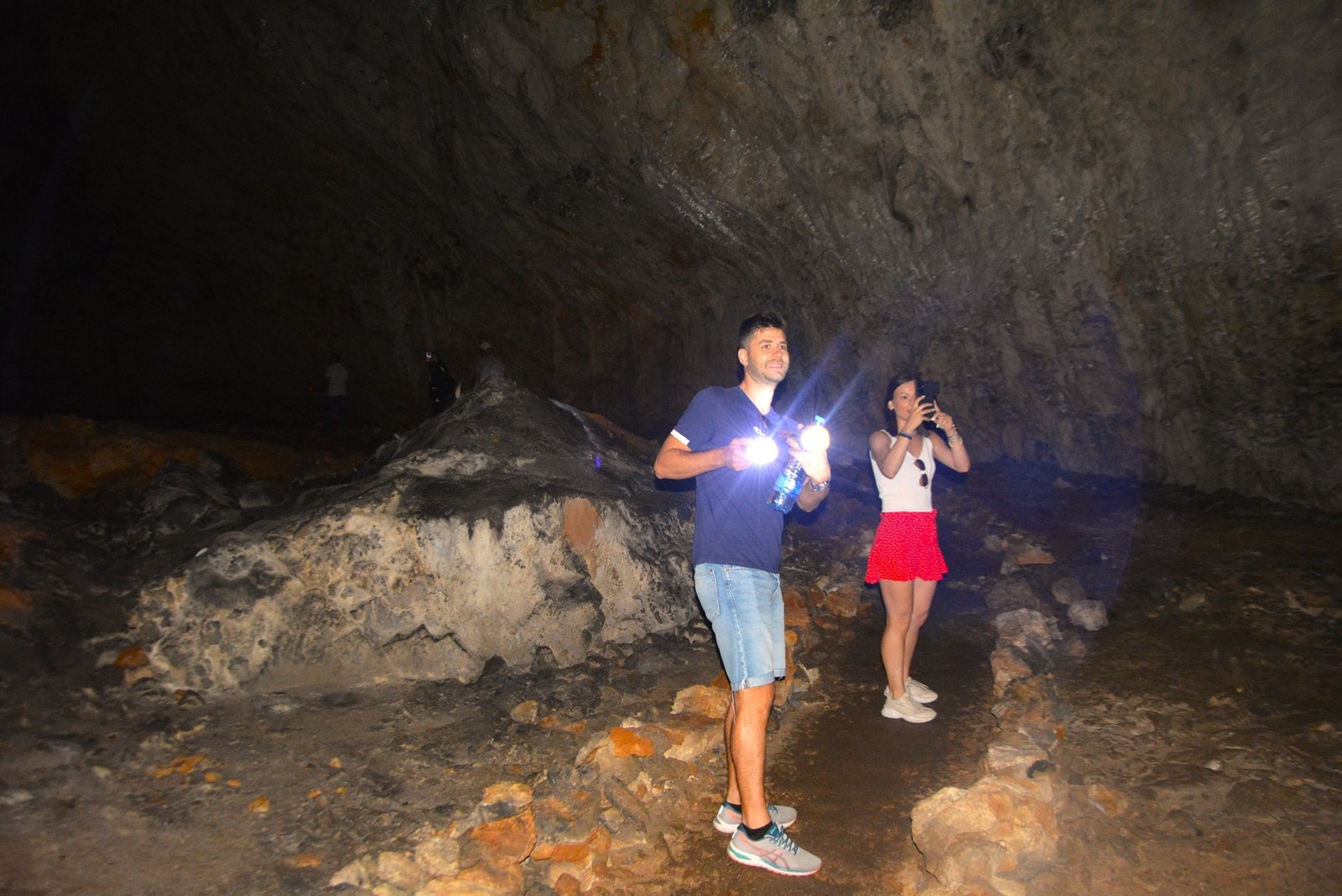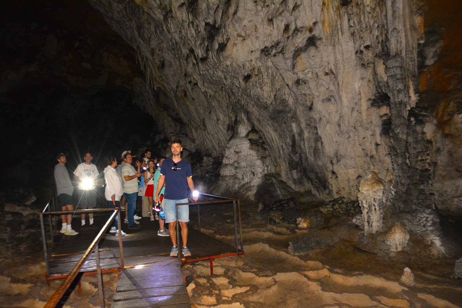 Η επίσκεψη στο σπήλαιο είναι συνήθως το αποκορύφωμα της βαρκάδας. Μετά από μια μαγευτική διαδρομή, το σκάφος δένει σε μια μικρή αποβάθρα και οι επισκέπτες εισέρχονται στο εσωτερικό του βουνού. Η διαδρομή μέσα στη σπηλιά είναι περίπου 500 μέτρα και είναι ειδικά διαμορφωμένη με ξύλινα πεζοδρόμια, φωτισμό και κάγκελα, εξασφαλίζοντας μια ασφαλή και άνετη εξερεύνηση. Μέσα στη σπηλιά, ο χρόνος μοιάζει να έχει σταματήσει. Εκεί θα ανακαλύψετε μια φαντασμαγορική ποικιλία από σταλακτίτες, σταλαγμίτες, στήλες και άλλα σχηματιζόμενα από το νερό και το πέρασμα των αιώνων. Η ηλικία αυτών των σχηματισμών αγγίζει τα εκατοντάδες χιλιάδες χρόνια, προσφέροντας μια απτή σύνδεση με την προϊστορική γεωλογική ιστορία της περιοχής.