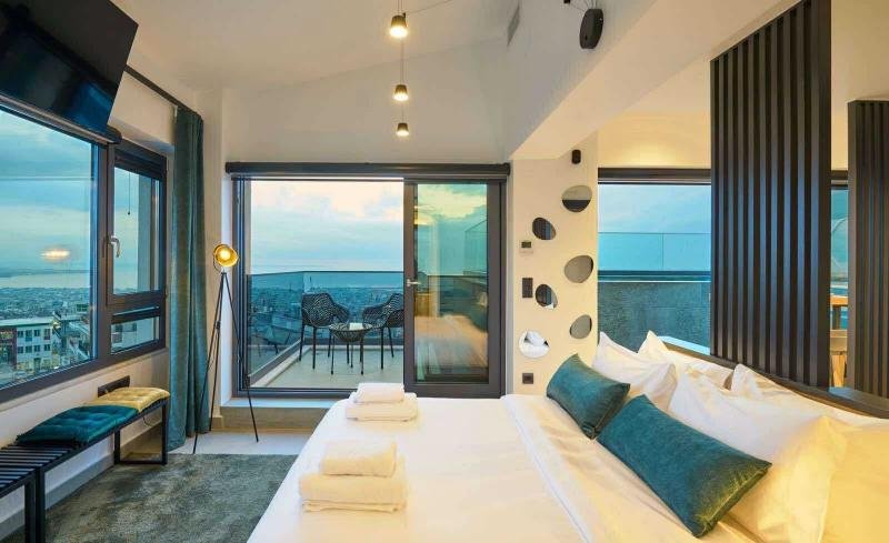 Οι σουίτες του Sigma Suites Hotel είναι σχεδιασμένες με γνώμονα την άνεση, την πολυτέλεια και τη λειτουργικότητα. Ξεκινώντας από την Penthouse σουίτα με ιδιωτική θερμαινόμενη πισίνα και θέα 360° στην πόλη και τον Θερμαϊκό Κόλπο, τη Superior σουίτα με Jacuzzi, τις Deluxe σουίτες, αλλά και τις μεζονέτες, κάθε χώρος αποπνέει κομψότητα και ζεστασιά.