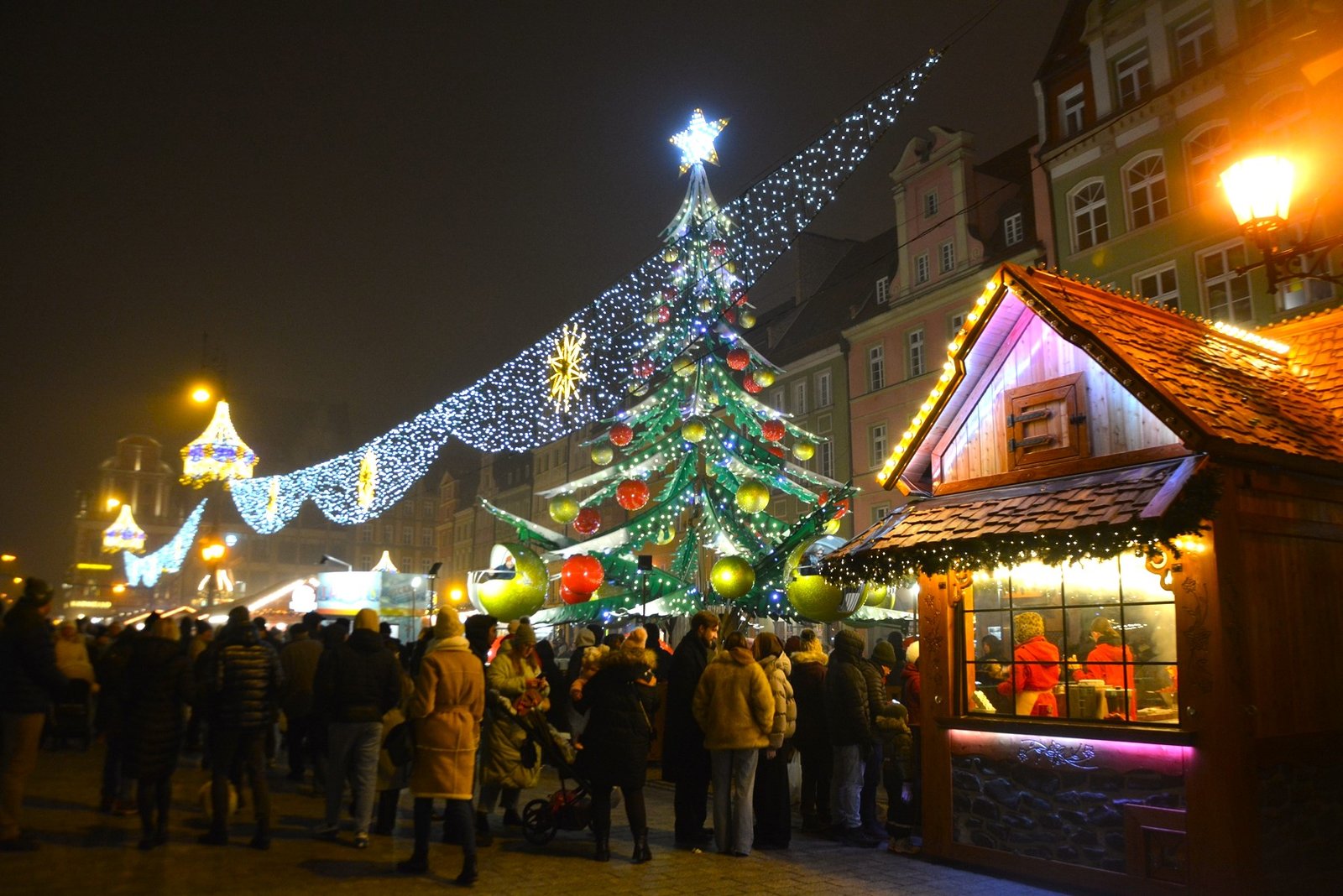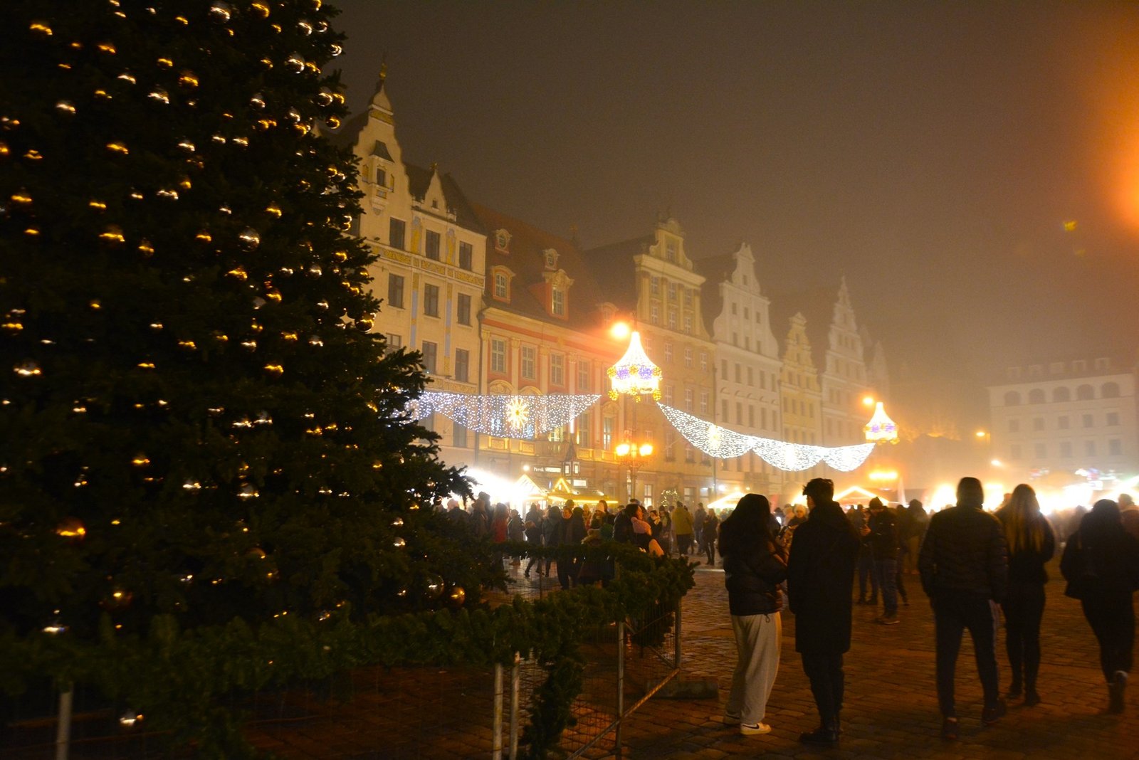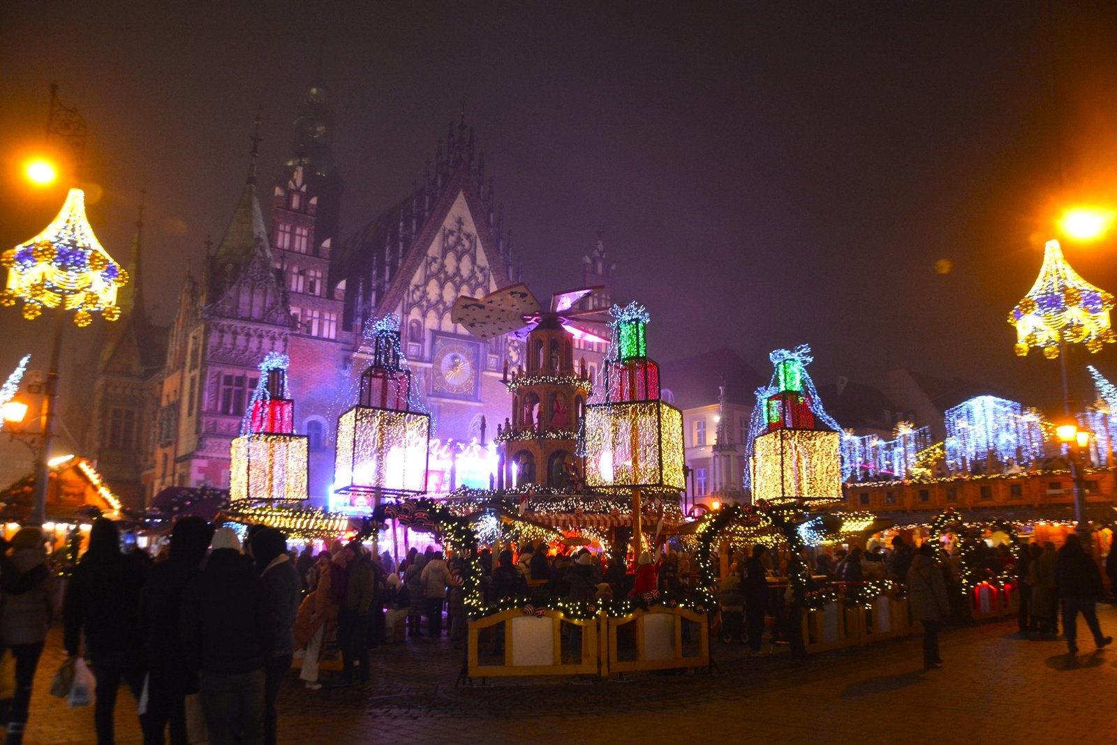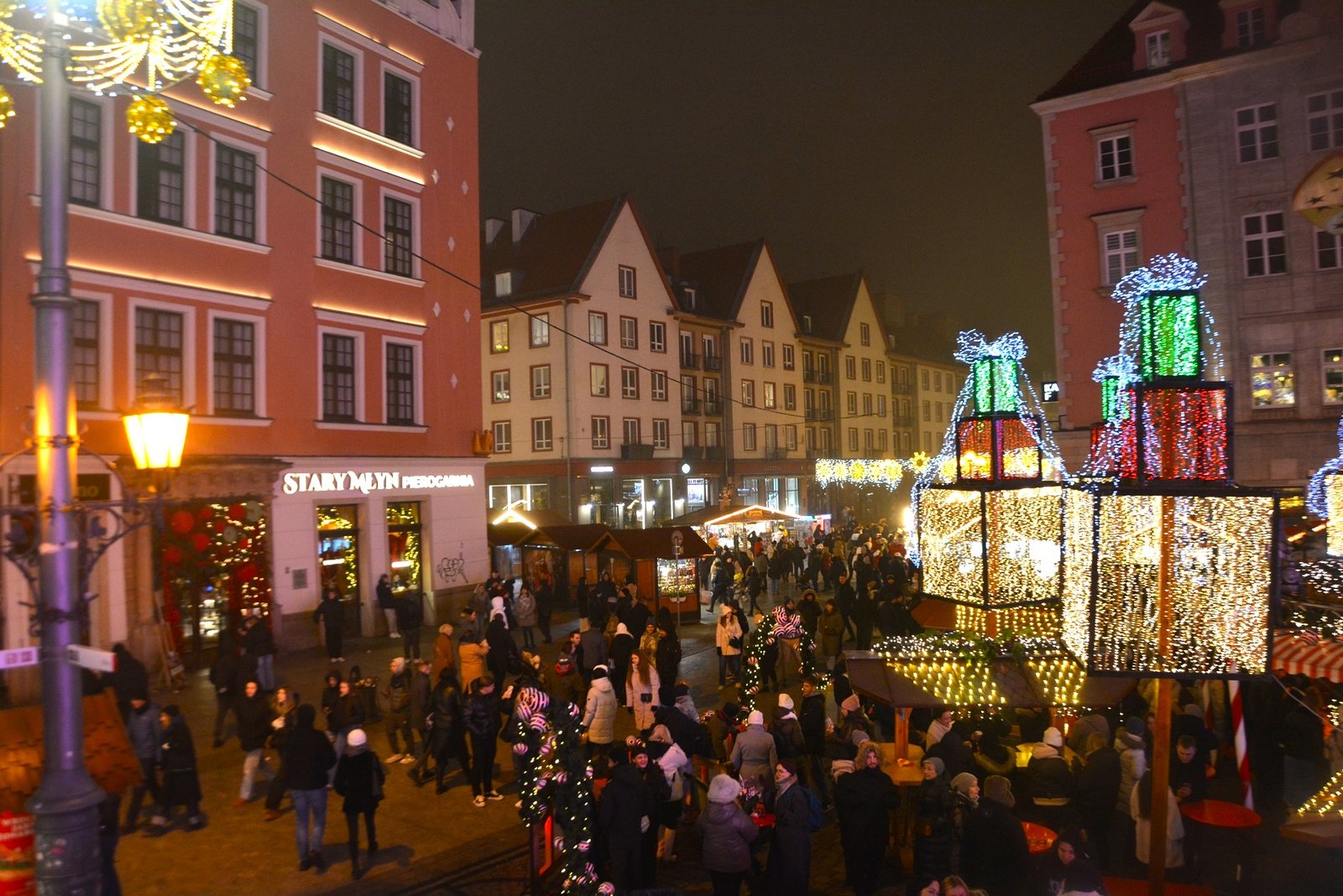 Οι στολισμοί είναι φαντασμαγορικοί. Οι πολύχρωμες, γοτθικές προσόψεις των κτιρίων φωτίζονται από χιλιάδες λαμπιόνια, ενώ το επιβλητικό Γοτθικό Δημαρχείο δεσπόζει στο κέντρο της γιορτής. Ένα τεράστιο, λαμπερό Χριστουγεννιάτικο Δέντρο στήνεται στην πλατεία, ενώ σε ειδικές κατασκευές, σκηνές από παραμύθια ζωντανεύουν, κάνοντας την ατμόσφαιρα ιδανική για οικογένειες. Ακόμα και οι διάσημοι νάνοι του Βρότσλαβ συμμετέχουν στη γιορτή, με πολλούς από αυτούς να ντύνονται με χριστουγεννιάτικες ενδυμασίες ή να κρατούν γιορτινά δώρα.
