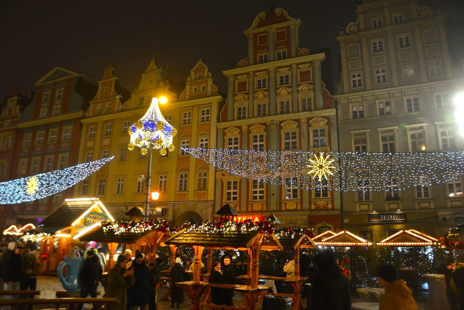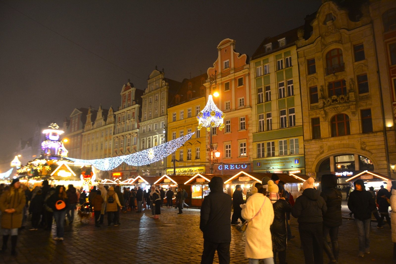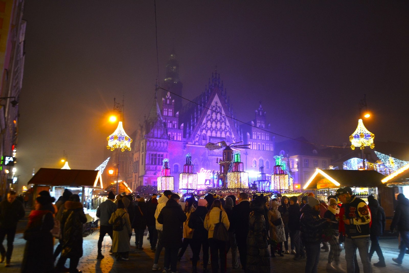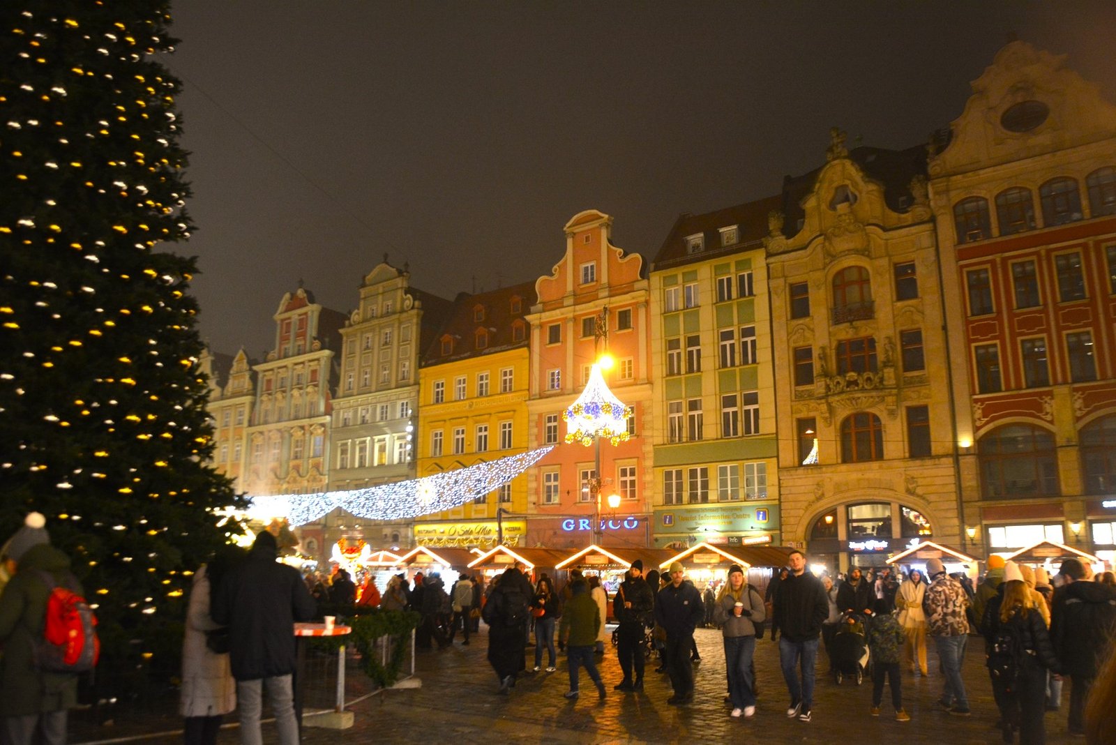 Οι στολισμοί είναι φαντασμαγορικοί. Οι πολύχρωμες, γοτθικές προσόψεις των κτιρίων φωτίζονται από χιλιάδες λαμπιόνια, ενώ το επιβλητικό Γοτθικό Δημαρχείο δεσπόζει στο κέντρο της γιορτής. Ένα τεράστιο, λαμπερό Χριστουγεννιάτικο Δέντρο στήνεται στην πλατεία, ενώ σε ειδικές κατασκευές, σκηνές από παραμύθια ζωντανεύουν, κάνοντας την ατμόσφαιρα ιδανική για οικογένειες. Ακόμα και οι διάσημοι νάνοι του Βρότσλαβ συμμετέχουν στη γιορτή, με πολλούς από αυτούς να ντύνονται με χριστουγεννιάτικες ενδυμασίες ή να κρατούν γιορτινά δώρα.