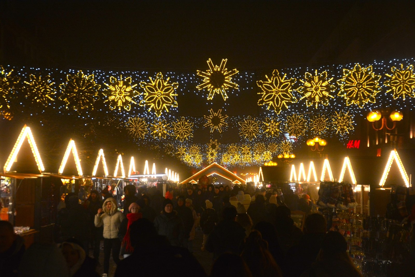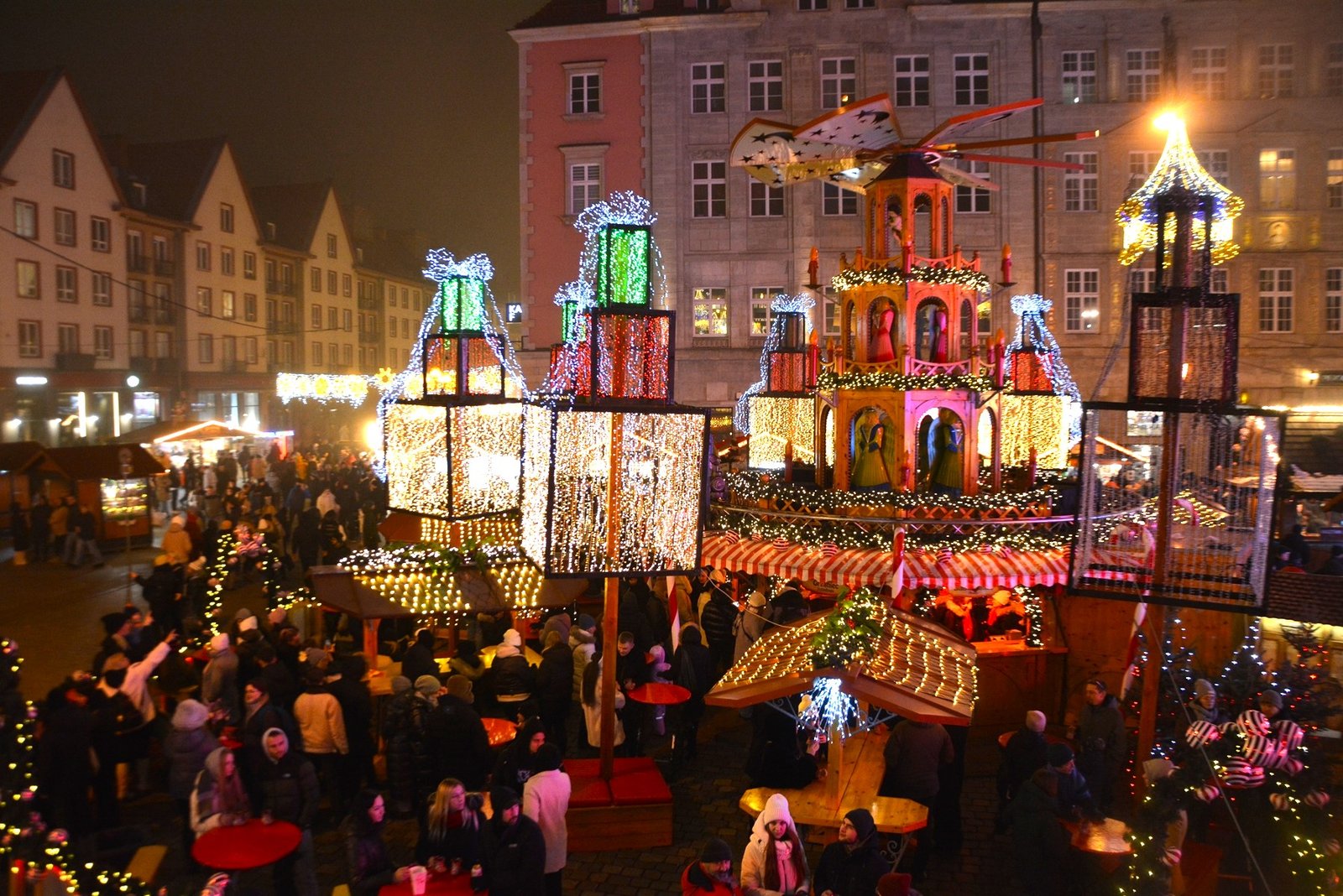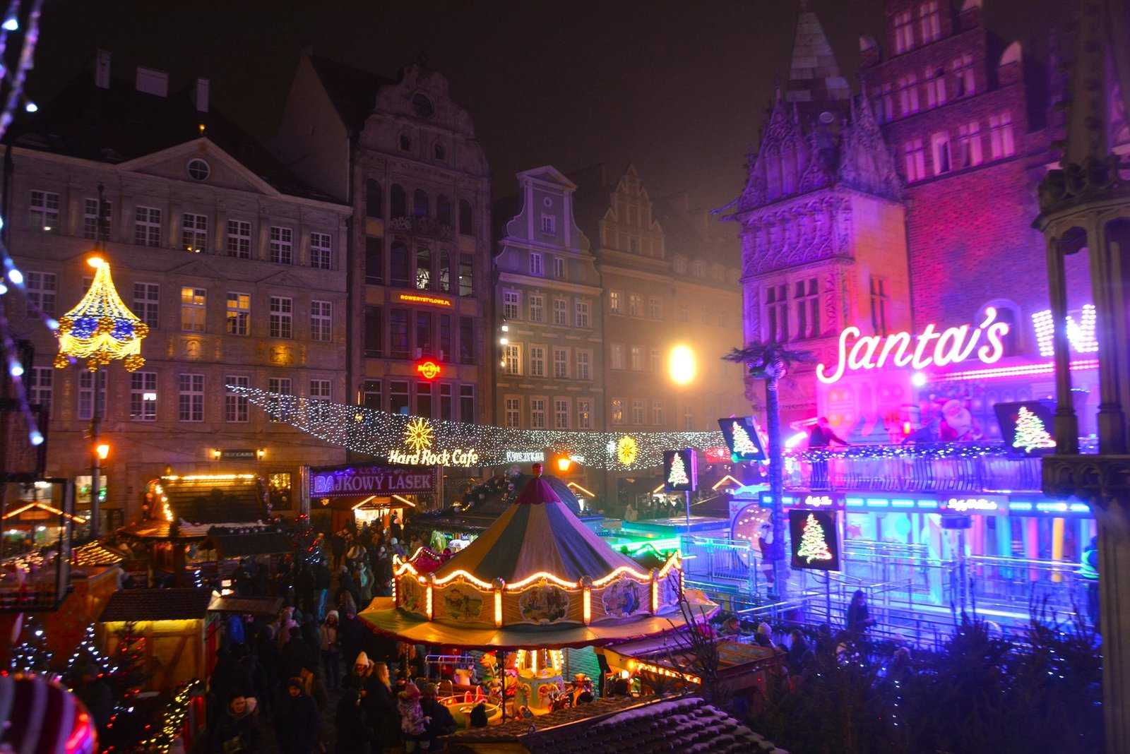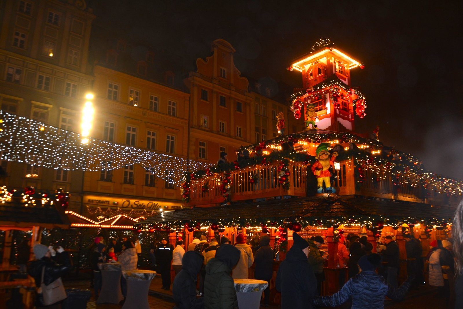 Οι στολισμοί είναι φαντασμαγορικοί. Οι πολύχρωμες, γοτθικές προσόψεις των κτιρίων φωτίζονται από χιλιάδες λαμπιόνια, ενώ το επιβλητικό Γοτθικό Δημαρχείο δεσπόζει στο κέντρο της γιορτής. Ένα τεράστιο, λαμπερό Χριστουγεννιάτικο Δέντρο στήνεται στην πλατεία, ενώ σε ειδικές κατασκευές, σκηνές από παραμύθια ζωντανεύουν, κάνοντας την ατμόσφαιρα ιδανική για οικογένειες. Ακόμα και οι διάσημοι νάνοι του Βρότσλαβ συμμετέχουν στη γιορτή, με πολλούς από αυτούς να ντύνονται με χριστουγεννιάτικες ενδυμασίες ή να κρατούν γιορτινά δώρα.
