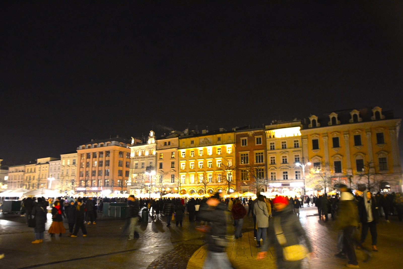 Η Rynek Główny γίνεται το επίκεντρο της χριστουγεννιάτικης ζωής στην Κρακοβία, καθώς φιλοξενεί μια από τις πιο όμορφες και ιστορικές Χριστουγεννιάτικες Αγορές (Targi Bożonarodzeniowe) της Ευρώπης. Οι ξύλινοι πάγκοι, φωτισμένοι με χιλιάδες λαμπιόνια, προσφέρουν μια πανδαισία τοπικών προϊόντων.